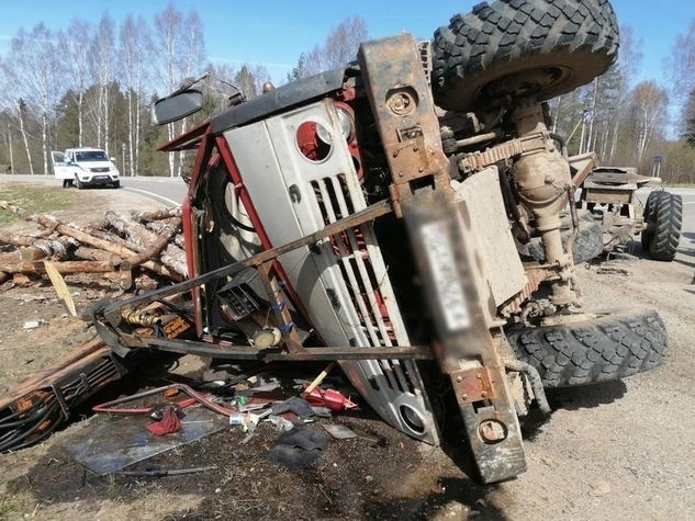 Серые будни 101-го километра автодороги Кострома – Шарья – Киров – Пермь сегодня, 23 апреля, окрасились в тревожные тона. В Островском районе тяжеловесный лесовоз — КАМАЗ, нашпигованный бревнами, — превратился в груду металла, покинувший пределы разумного движения. Случается же такое. Машина, которая обычно без проблем глотает километры, вдруг решает капитулировать перед дорожной стихией.